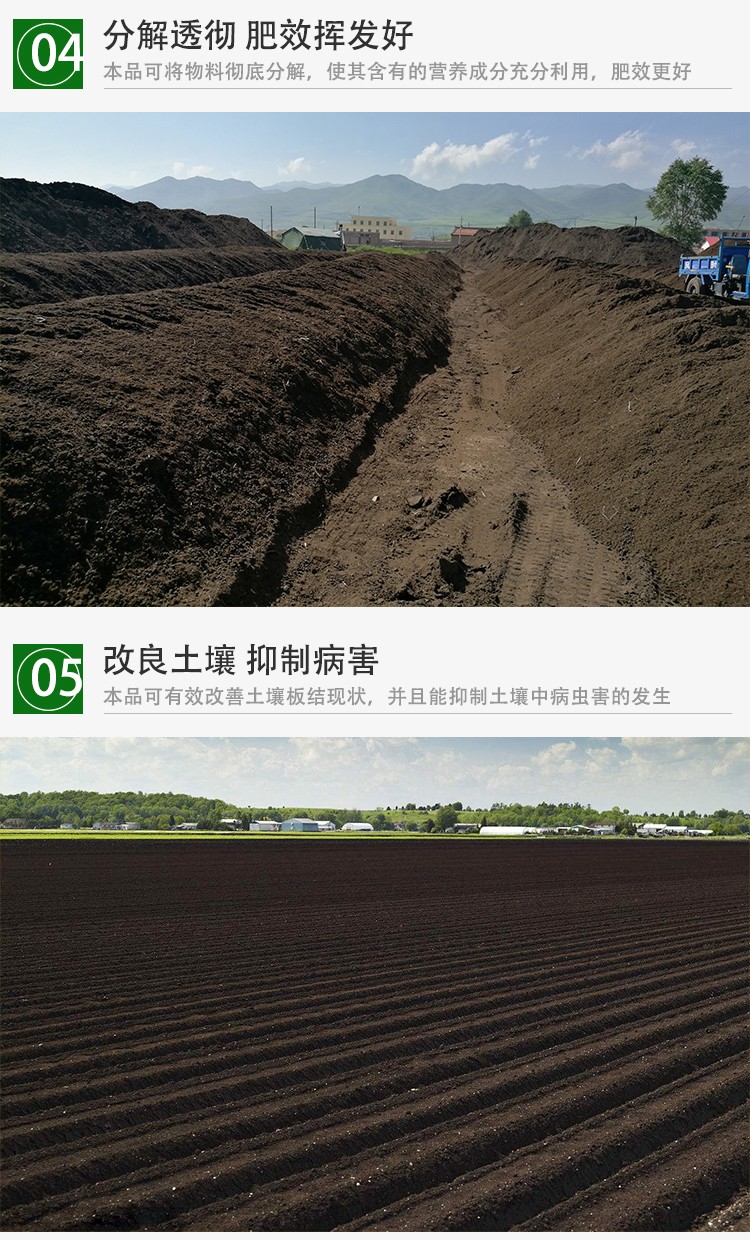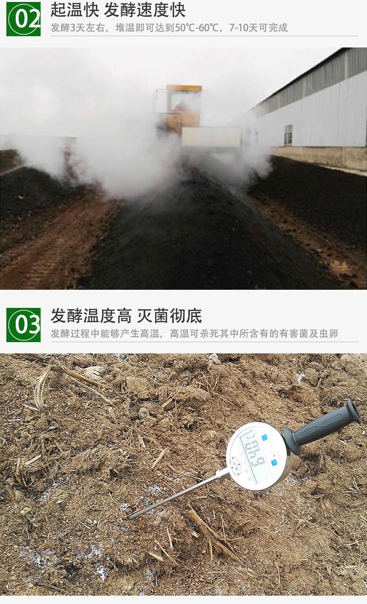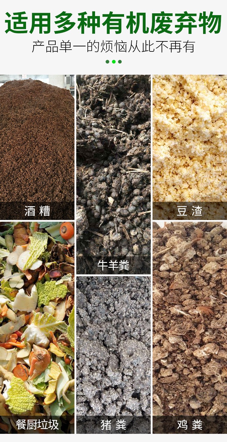 • 适用范围:鸡粪、羊粪、猪粪、牛粪等各种禽畜粪便及酒糟、糖渣等发酵有机肥。